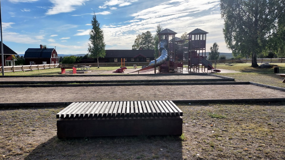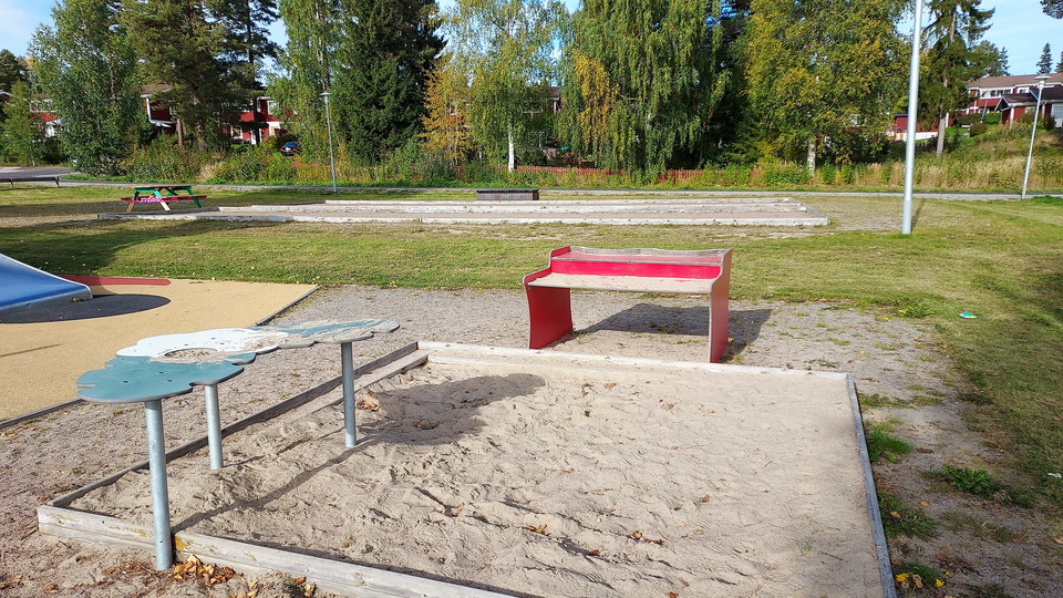 Leikkikenttä on lähellä Ämbarbovägenin ja Torsvägenin risteystä.