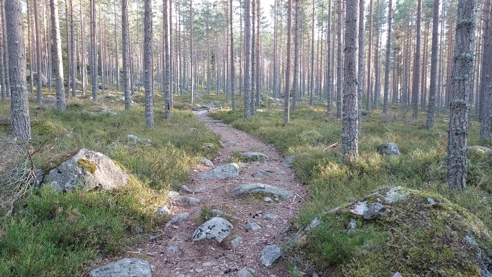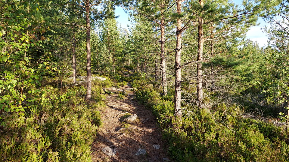 Lyhyt ja mukava kävelyreitti Mörkbergetillä. Ylhäällä kulkija palkitaan kauniilla näköaloilla Valon laaksosta.