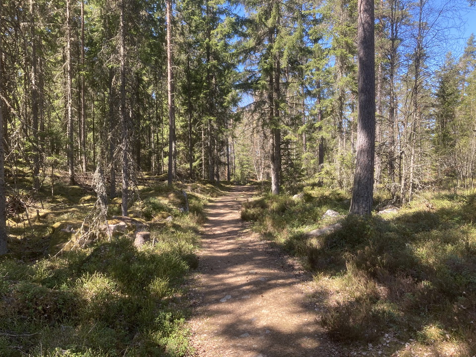 Linkkejä vaellusreittien välillä Rusarebo Ängissä ja Lundsbo Bokskogissa. Polun itäosa kulkee havumetsän läpi, kun taas länsiosa seuraa Hindsenin merta. Tässä on upeat näkymät järvelle. Keskellä polkua ohitat Ohsabanan museon rautatien.