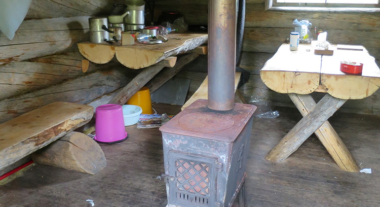Hyfsat bra koja. Finns en fin kamin, bord och stolar, och sängar. Dock så var exakt allting helt täckt i muslort när vi var dit början av Juni -21. Bäddarna kändes inte lockande att sova i. Det finns en bäck bara något tiotal meter bort med drickbart vatten.