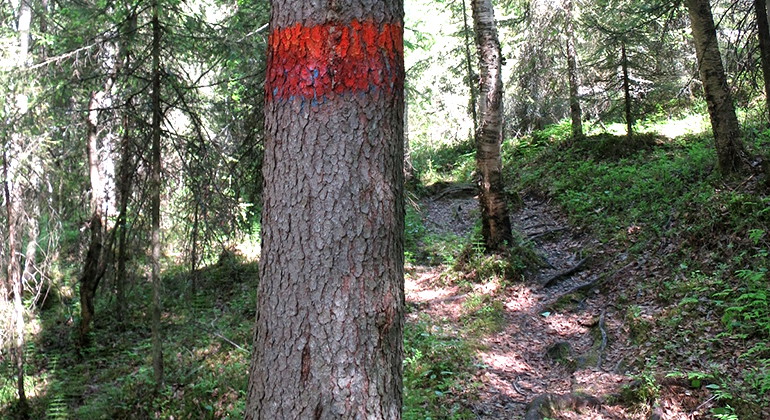 Rackbergetin läpi kulkeva 3,6 kilometrin kävelyreitti.