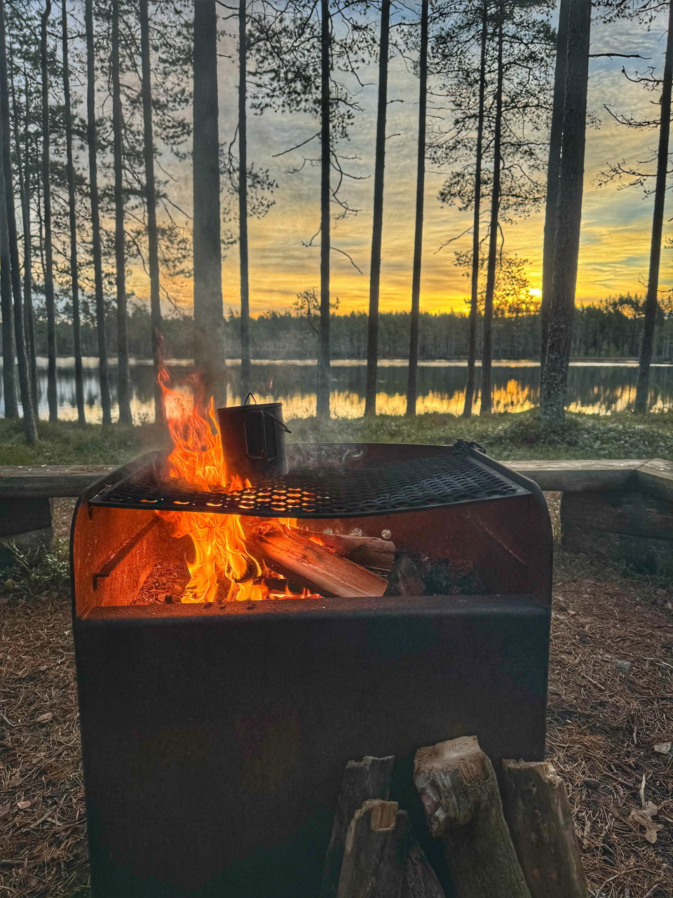 The trail runs along the western and northern edge of the lake with the mysterious name Vithavet. At the edge of the lake there is a small headland, which offers a nice natural resting place with a shelter, fireplace, wood store and toilet. Keep in mind that firewood can sometimes run out.
