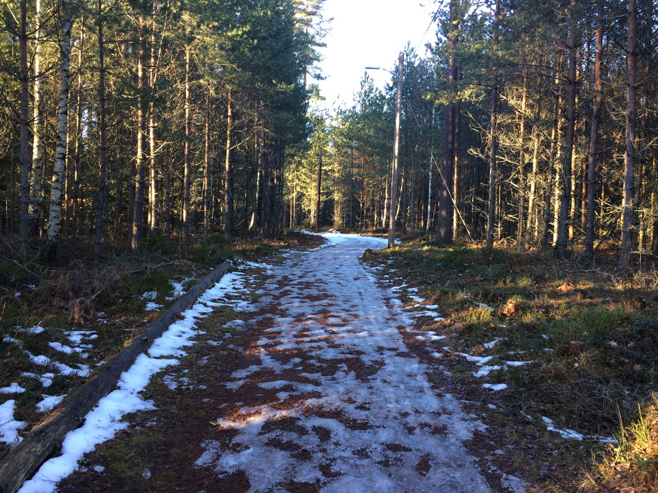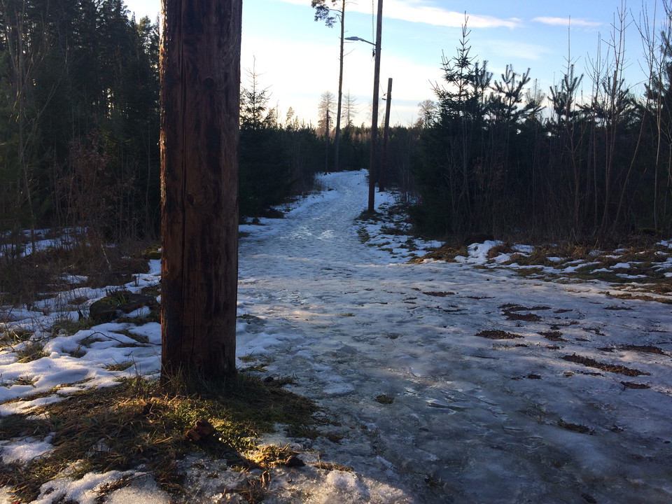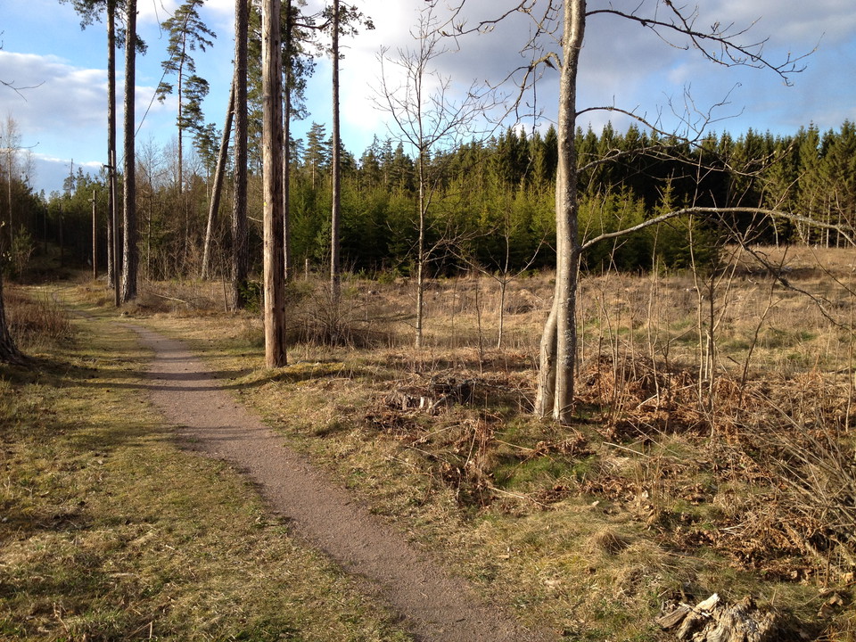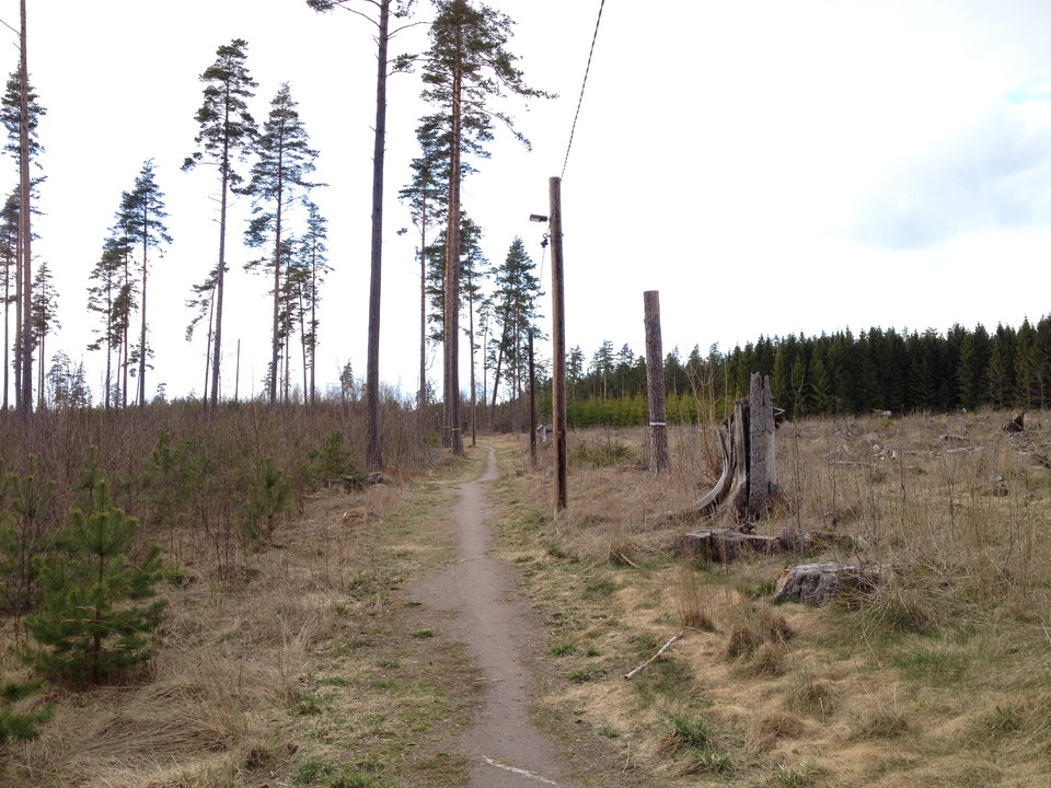 Tyvärr är det bara virkesåker kring spåret, inga riktigt fina skogar, men det har ändå sina poänger med ett anlagt spår ut i terrängen. Skiljer det verkligen 14 meter i höjd? Det är ju alldeles platt!