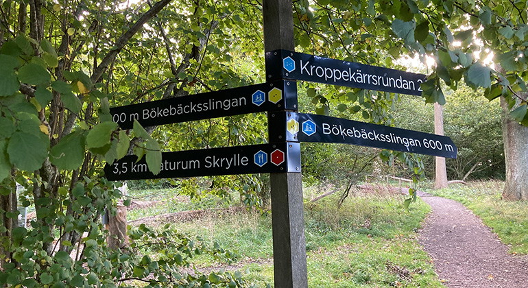 Kansallispuiston eteläosassa on suurempi parkkipaikka, josta pääsee helpoimpaan, jos seuraat Dalby Söderskogia Norrevångsvägenistä.