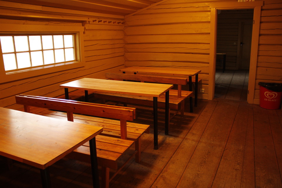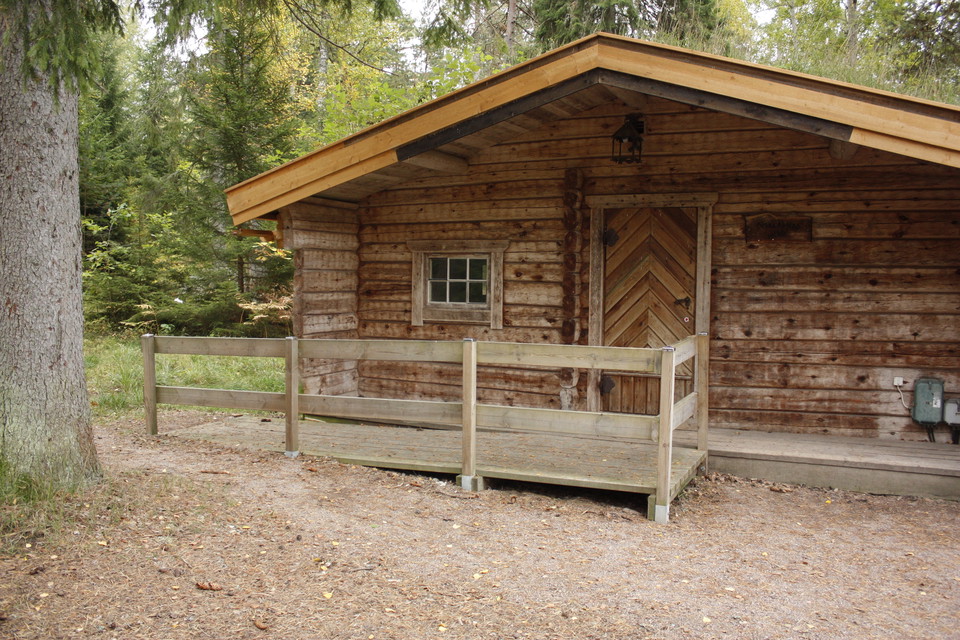Heating cabin at the bathing area. Inside the cabin there are changing rooms, separate for men and women, and two rooms with tables and benches. From the north side there is a ramp for wheelchair access.