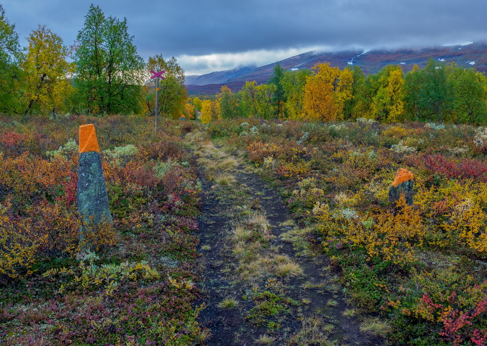 Seuraa Vindelälvenin laaksoa kohti Norjan rajaa. Polku kulkee pitkälti vuorikoivumetsän läpi. Onhan täällä mukavia yöpymisen mökkejä.