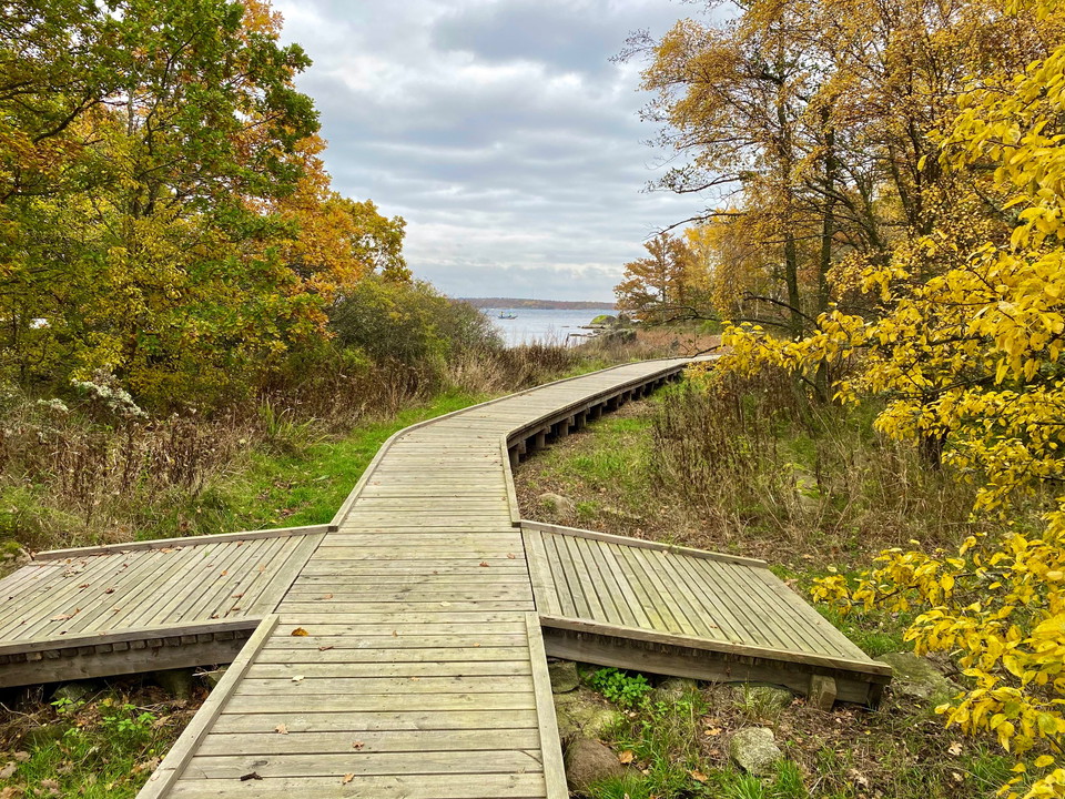 Eriksbergsleden combines two older trails: Kohageleden, which started near the entrance to Eriksberg in the northeast, and Allböleleden, which began at Björnahemmet in the southwest. The two have been connected by a couple of spectacular bridges linking Dragsö Island to the mainland.