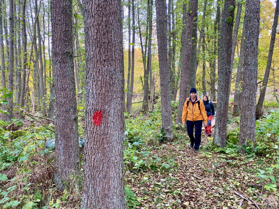 At present, the trail is not a circular route — you’ll need to return the same way if you park at one of the two starting points. Many hikers leave a bicycle at Björnahemmet (where parking is more limited than at Outdoor Eriksberg). When the hike is finished, one person in the group cycles back to pick up the car and returns to collect the others.