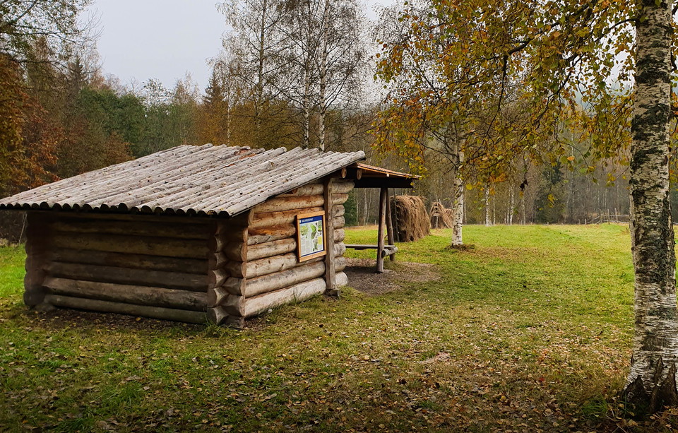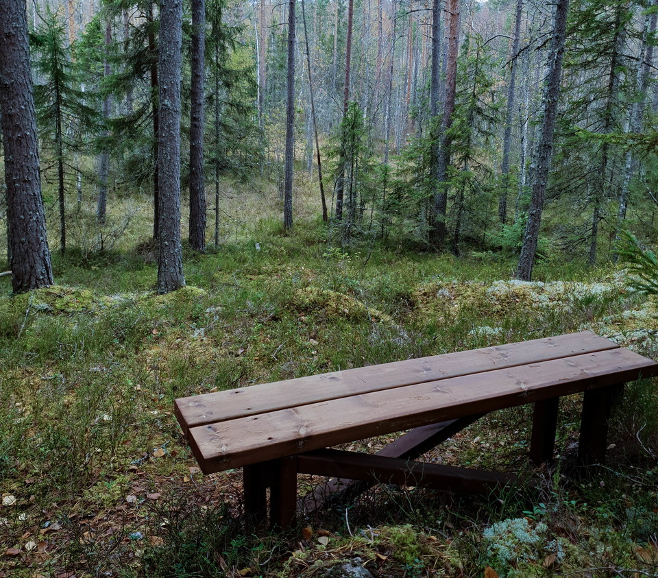 From the parking lot, it is just a short way down to the meadow where the log booth lies. Here is a fireplace, wood and dry gas. From the logbook, marked leads are deleted. The area is quite hilly, so in several places there are benches for rest and rest.