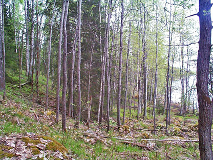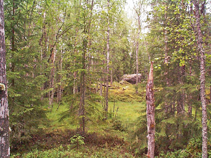 Mossgräsberget's nature reserve is dominated by a large foliage burn, that is, a deciduous forest that has come up after forest fire. The deciduous burn is the core of a whole area that burned off at a big fire in the late 19th century. Now the deciduous forest shines in the eyes as you look west over Ågsjön from the road between Åg and Vintjärn. Once inside the forest, aspen and high-stemmed birch dominate, often attacked by explosive peaks. The soil is more nutritious than is usual in old deciduous burns. Night violet is one of the nature plants and the smaller flycatcher here has its safest room in Dalarna. In addition to deciduous forest, mixed forest, pure spruce stocks and in northern lean pine fields are included. The deciduous burn was previously affected by the forest work of the cows from Åg's garden, an agriculture where the fields were fought by 1954.