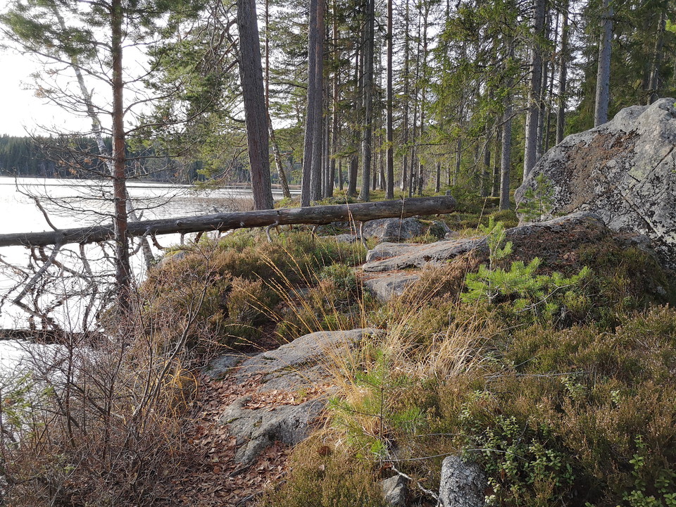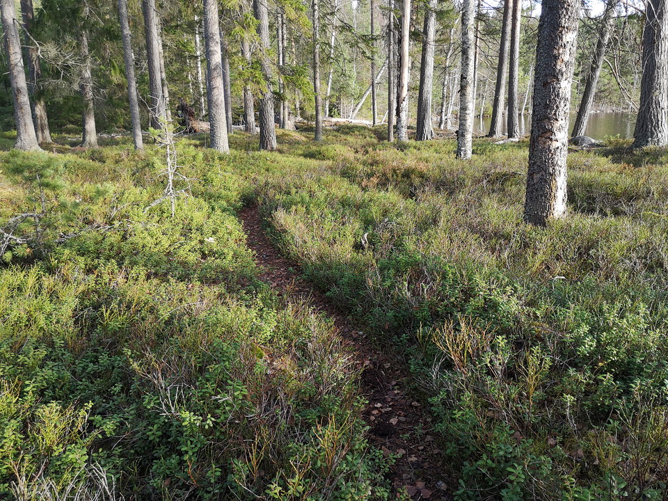 Myrgäsen bathing place, natural bathing place in Lake Myrgäsen. Nice path that goes north, but there are no footbridges over the streams. At the rest area was a Stone Age settlement. Note! Parking is missing