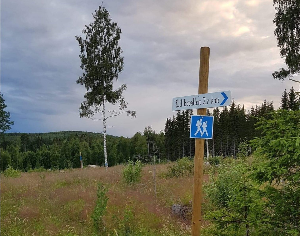 Vandringsled mellan Gäddviksvallen och Vallkorset som passerar Lillbovallen, Långsbovallen, Ringfuru, Svarttjärn och Vallkorset nära Vålsjö kvarn i Järvsö.