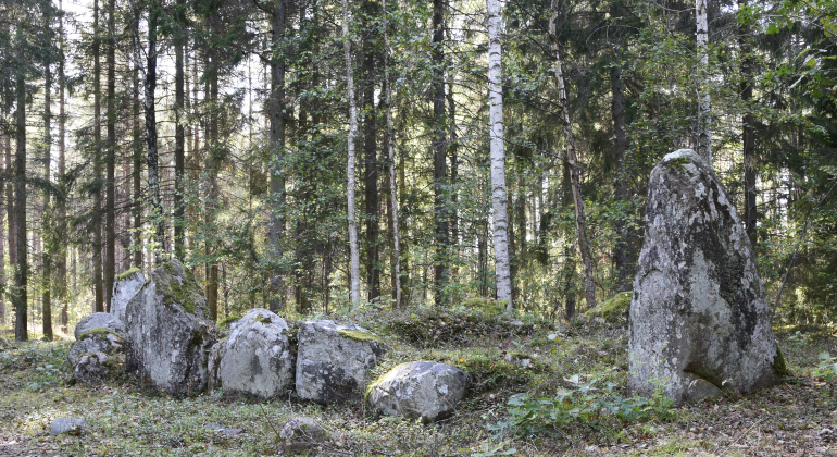 Genom denna vackra gammelskog kan du vandra den kilometerlånga kulturstigen och se tydliga fornlämningar från bronsåldern.
