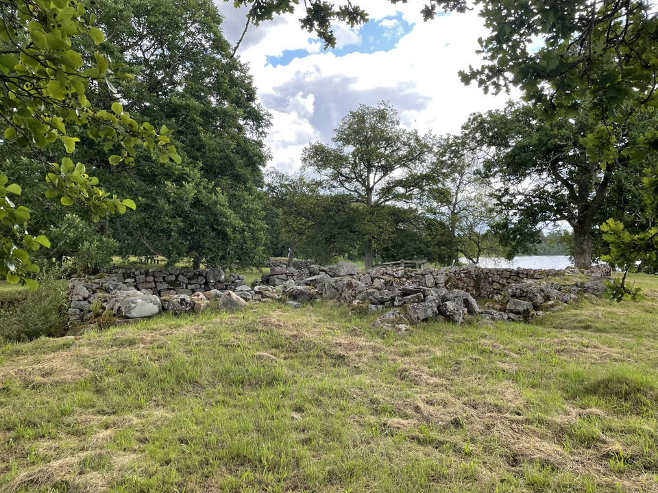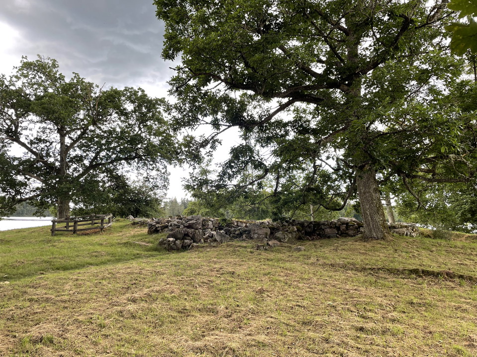 On a headland in Lake Oxhultasjön lie the remains of the Sjöboholm manor, which has its roots in the Middle Ages. In the 15th century and most of the 16th century, it was the main farm for Itzholte County, the Danish Bergslagen region of the time, with rich resources of bog and lake ore. On his way to a meeting with Gustav II Adolf, Christian IV is said to have spent the night at Sjöboholm. The Scanian noblewoman Gertrud Grip bought the farm in 1647 and celebrated her wedding to Göran Galle here two years later. Around 1840 the farm was abandoned, and now only the ruins remain on two islets, each with a moat on the land side. The site is well cared for, and it's easy to find suitable places to spread out your coffee.