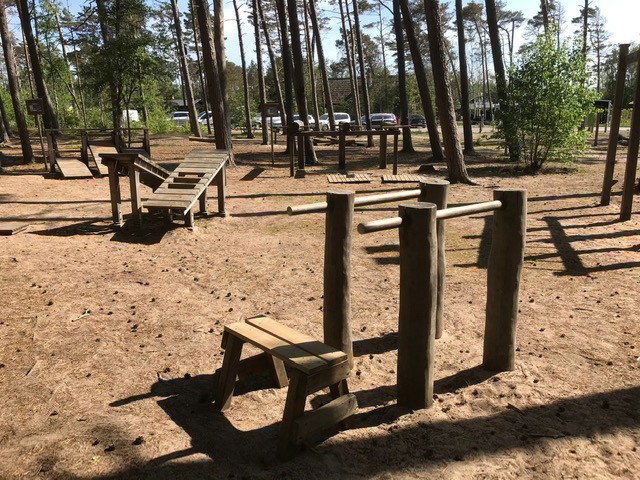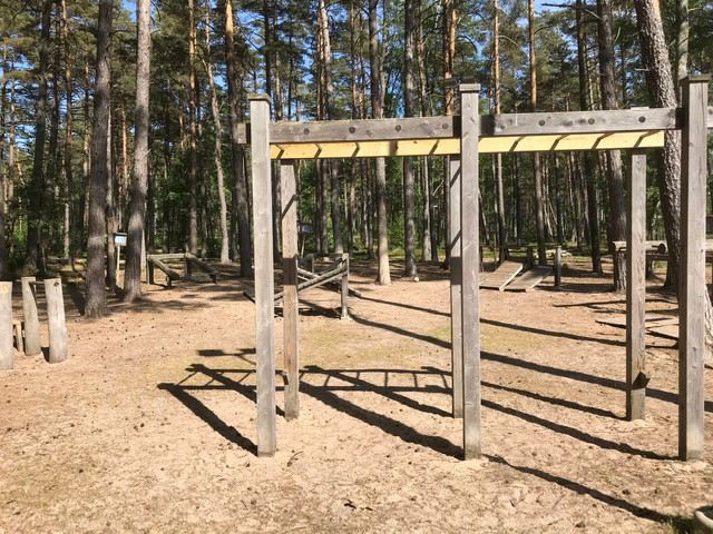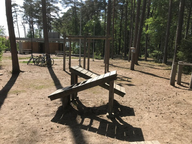 There is an outdoor gym in the nature reserve at Hökafältet. There are also toilets here all year round.