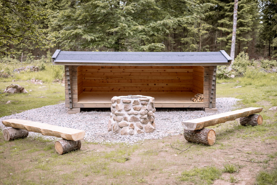 For those who want to experience something extra, Bångelsbo offers a unique setting in a lush pasture. Here you can gather in a cozy grill hut with space for 12–14 people, with both indoor and outdoor seating. There is also the option to stay overnight in a shelter, tent, or motorhome. The experience can be combined with food from the farm and a horse and carriage tour.