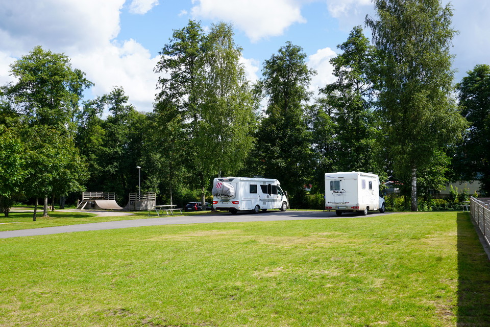 Here in central Hillerstorp is this paved parking lot. The area is limited but about 4-5 pieces can stand here at the same time. There is a possibility to empty gray water here. on the other side of the street is café Åkanten and another stone's throw away there is a grocery store and Haga Inn.
