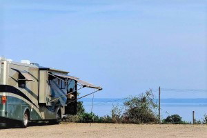 Ställplats för husbilar, café och restaurang med utsikt
