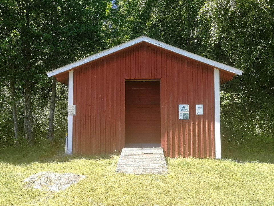 From Slätthög, at the church drive towards Åboda. At Åboda community drive onto a small gravel road between meadows with fences on the right.
