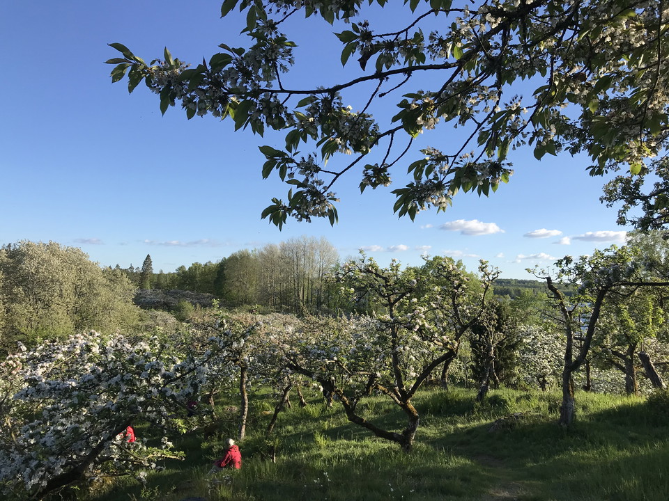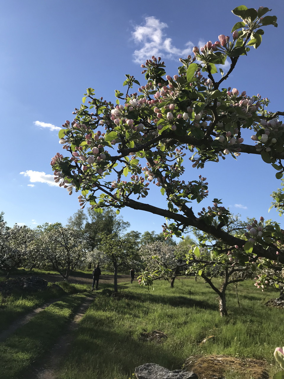 Welcome to visit but respect the cultivation by not picking fruit, burning or littering. A meadow fruit farm is a unique cultural landscape of which there are few left in Sweden. Usually the apple trees are in full bloom in the month of May.