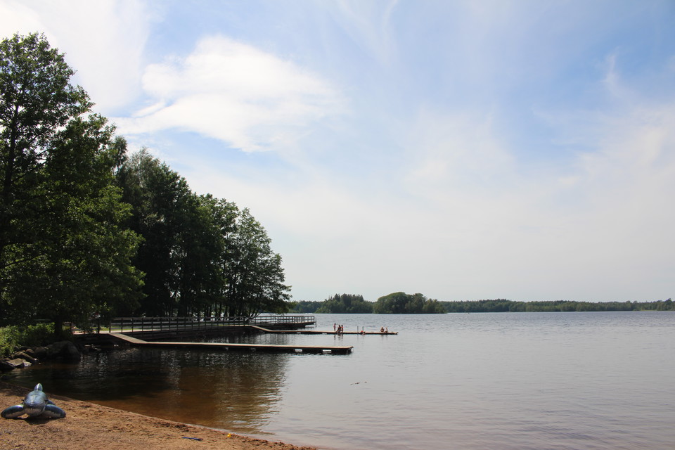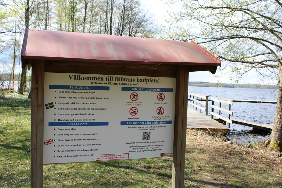 Welcome to Blötan's bathing place, which you will find between Tingsryd and Konga. Here you will find a jetty that ends at deeper water. At the bathing place there are changing cabins, a toilet, parking and a barbecue area. There are large grassy areas and a sandy beach that is approximately 25 meters long. The visibility depth in the lake is approximately 2.5 meters.