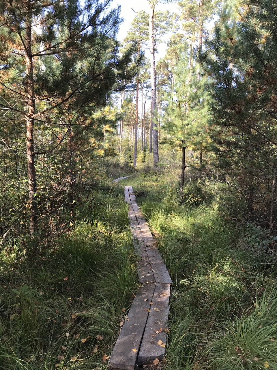 In the area there are several hiking trails that go through the nature reserves. The nature reserve consists of three parts. The two southern ones form Vekaudden, which stretches out into Bräkentorpa Lake. On the western side of the headland, the ridge meets the nutrient-poor lake from steep, pine-covered slopes, and on the eastern side it turns into flat sand fields and marshes. In the more humid parts, you walk long distances on winding ropes that take you around the entire Bräkentorpa lake.