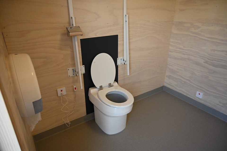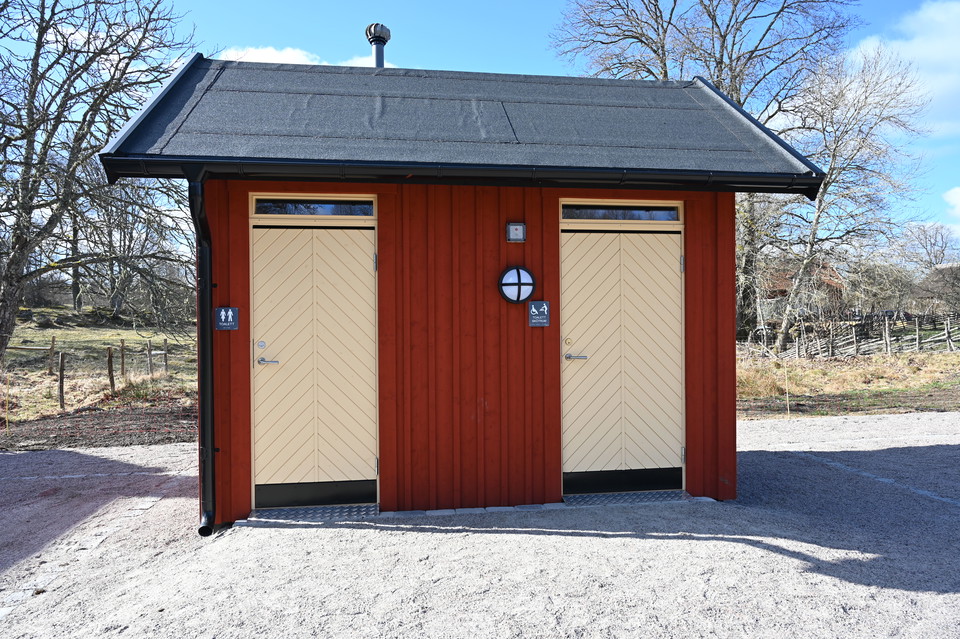 Outdoor toilet in Linné's Råshult that is adapted for the disabled. It also has a changing table for babies.