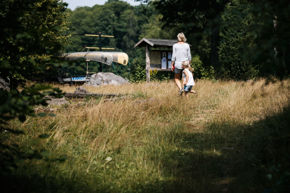 In Såganäs, by the nature campsite, there is a small cultural trail through beautiful pastures. Among other things, you pass an old soldier's croft with many years on its neck.