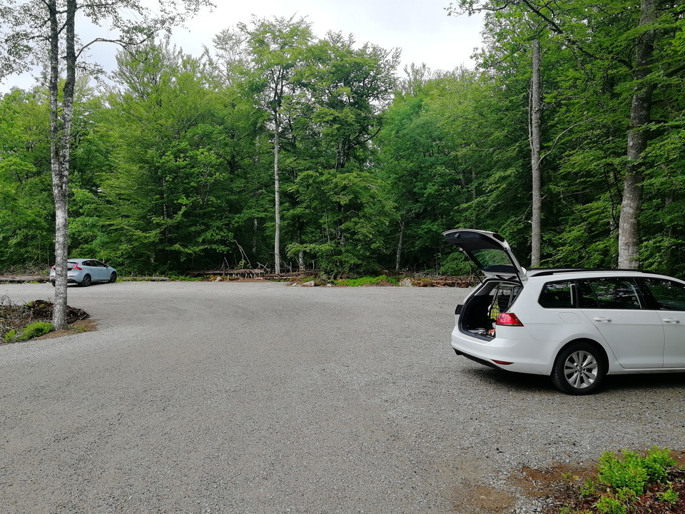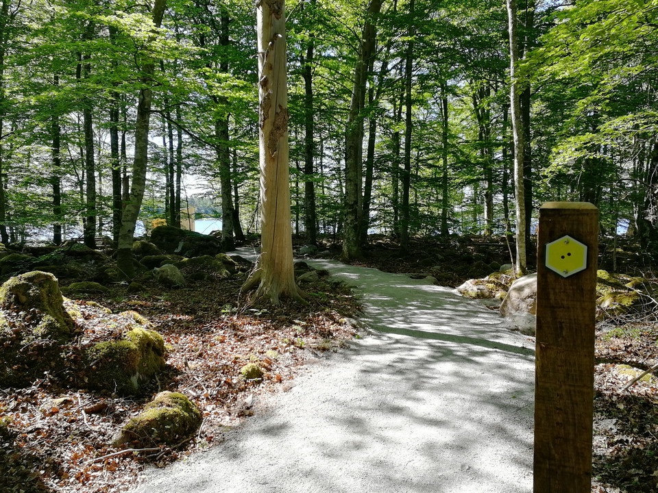 From the parking lot you reach the entrance through a flat, winding path that goes down to the water.