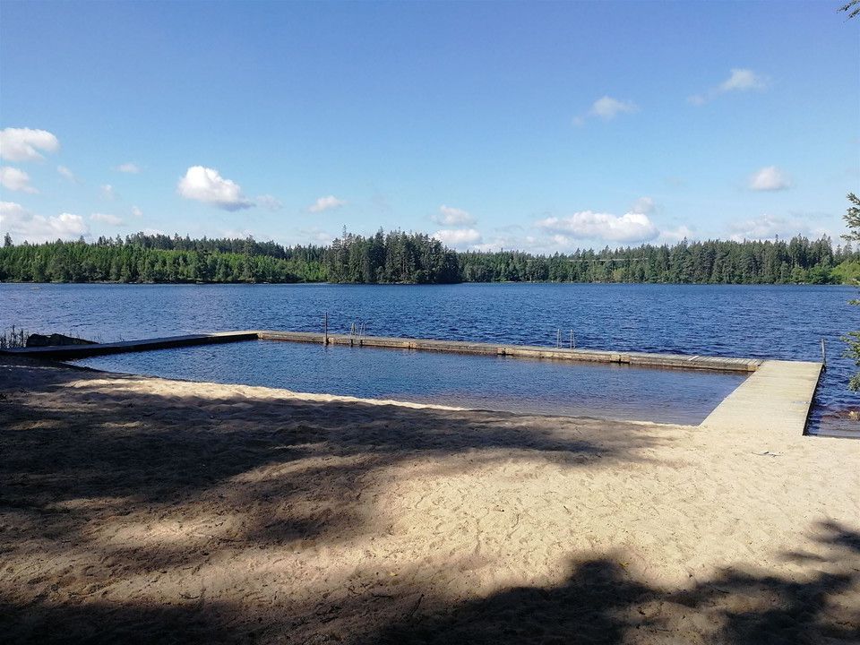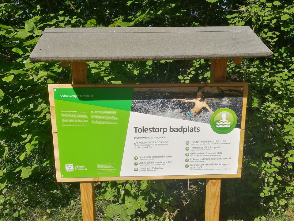 Bathing place at Sörsjön. Tolestorp is a nice smaller bathing place here you have access to barbecue area, toilet, sandy beach and jetty with ladder.