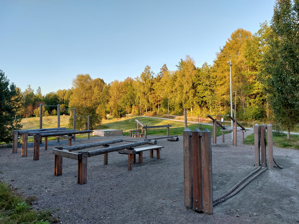 Lighting illuminates this new accessible outdoor gym in the evening, which is suitable for many visitors. The project with the adjacent pump track aims to increase outdoor recreation and activity in our scenic Linnaeus arboretum and create attractive meeting places in the greenery. The outdoor gym has stations for practicing balance, legs, press and pull exercises. Battle rope provides both stability and pulse. Instructions and QR codes are readable at all nine stations. Welcome here for a daily dose of physical activity!