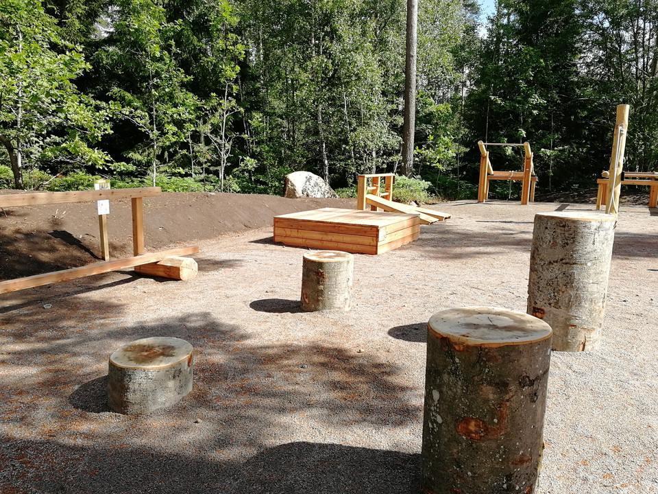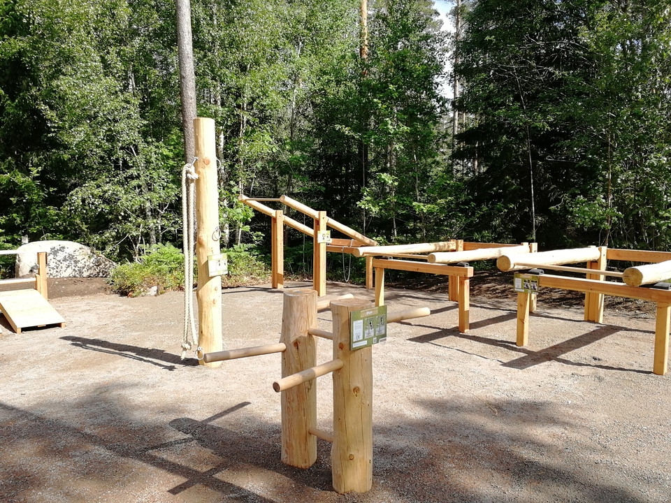 In the summer of 2022, an accessible outdoor gym was opened here, suitable for many visitors. Seven out of a total of nine stations have good accessibility for fitness enthusiasts. There is a shoulder press, back pull, sit-up ramp, stretching area, balance beam, jumping jacks, dips, pole for exercise bands and handrails. Right next to the outdoor gym there is also an accessible dry toilet. Lighting illuminates the area until 22:00. Welcome here to invigorating activity.
