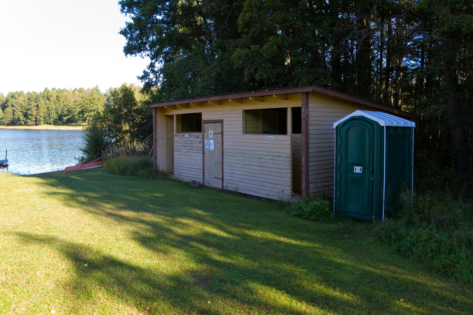 There is a jetty, changing cabins, barbecue area and a toilet. There is also a small sandy beach and fairly large grassy areas. The site is the start and finish of a hiking trail, Ringsbergsleden, which runs between Sandvad's sports cabin and Brevens bruk. The distance to Sandvad is 15 km and to Kilsmo 9 km. Not far from the bathing area is a waterfall, Hunnebergsfallet, in a beautiful ravine landscape. The waterfall that powered a saw is located in Byggebäcken between Skirasjön and Botaren. The difference in level is about 24 m.