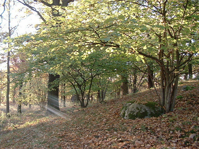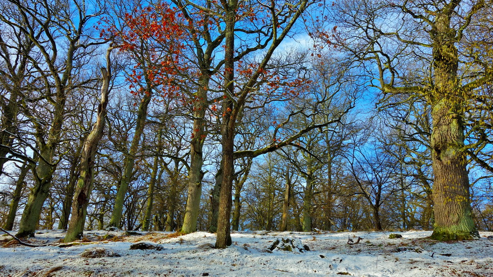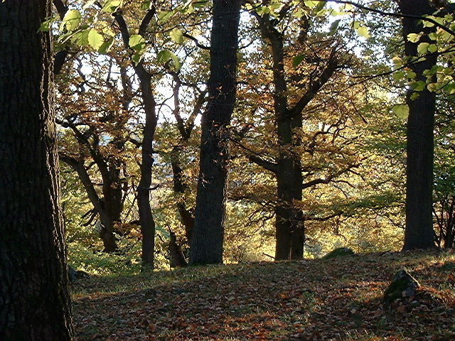 Jag läste på Länsstyrelsens hemsida att "Wilhelmsbergs ekbacke är kuperad med hällar och mullrika svackor. I sänkorna växer ett stort antal gamla ekar. Delar av området är lundartat med en del yngre ek, björk och asp.