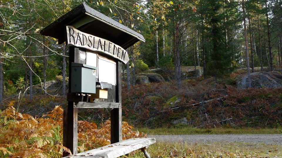 Drive county road 1120 north from Berg towards Tjällmo. After a mile, turn right towards Hällestad. Drive two kilometers and then turn right towards Häggetorp. From here it can be a little difficult to find, so it is good to have a map at hand. Follow the road towards Häggetorp for two kilometers and then turn left towards Rådsla. Then drive 3.4 kilometers and turn right at the four-way intersection just before Rådsla. From here it is 1.1 kilometers to the information sign where the trail starts.