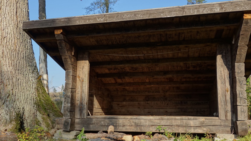 Along the Östgötaledens route south of the Säby Västerskog nature reserve, there is a windbreak with a barbecue area and an outhouse. The shelter is located at Stora Mörken's beach.