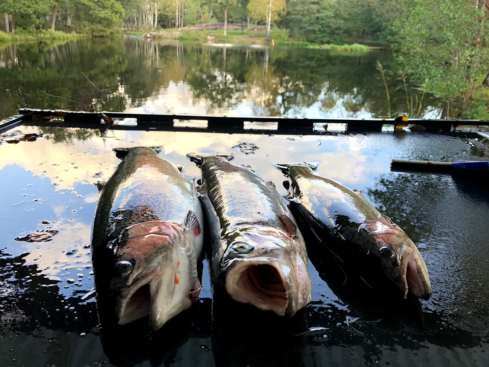 In a scenic environment, we can offer a first-class fly fishing water. Only 600 meters from road 13 between Höör and Hörby you will find Camp Mayfly - Bondemölla. Well embedded in nature, we have two ponds with high quality rainbow trout between 2-14 kg.