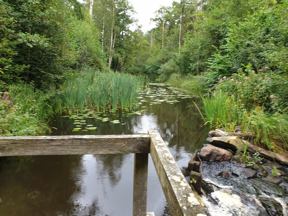 From road 108 between Spången and Hyllstofta turn off towards Värgapet east. Drive about 1 km, you see Östra Sorrödssjön on the left and after another 500 meters you drive over Ybbarpsån and turn immediately right after the river. You are now at Ruveröd's mill.Park the car here and go back over the bridge and go left and follow the forest road straight ahead as described on the sign.