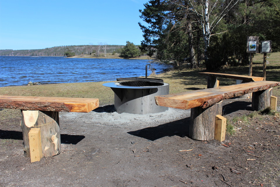 There is a small fire pit, a low bench and a picnic table. You can collect your firewood from the wood house at the western fire pit (walk about 125 m).