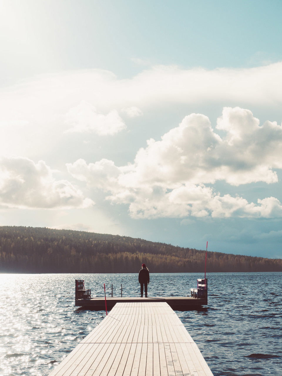 A stable floating dock with a sturdy railing to hold on the left side for people in wheelchairs or with impaired vision. Water toilets open during the bathing season, one of which is accessible.