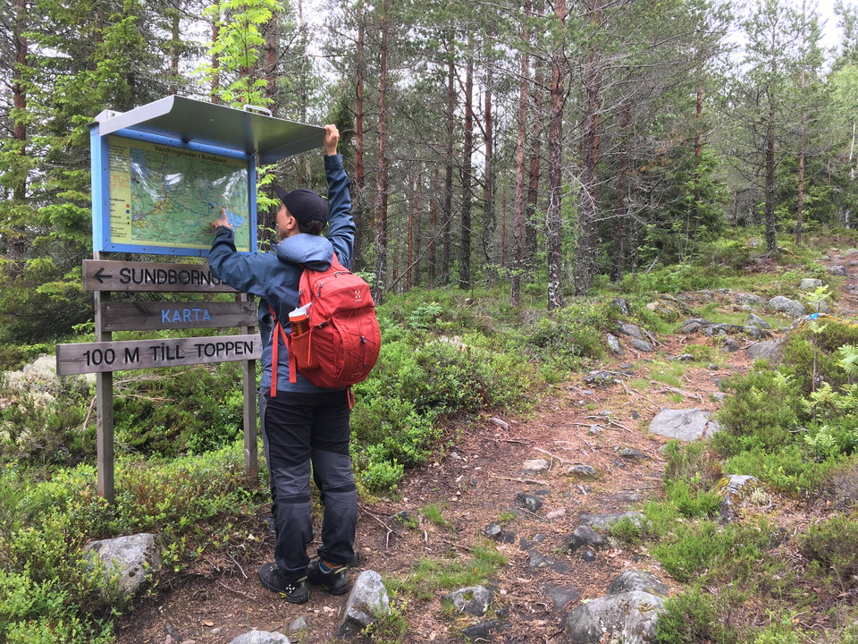 Sundbornsleden is goed gemarkeerd met blauwe kleur op bomen en palen evenals houten borden. Het is aan te raden dat u de Råbergsslingan metsols wandelt.