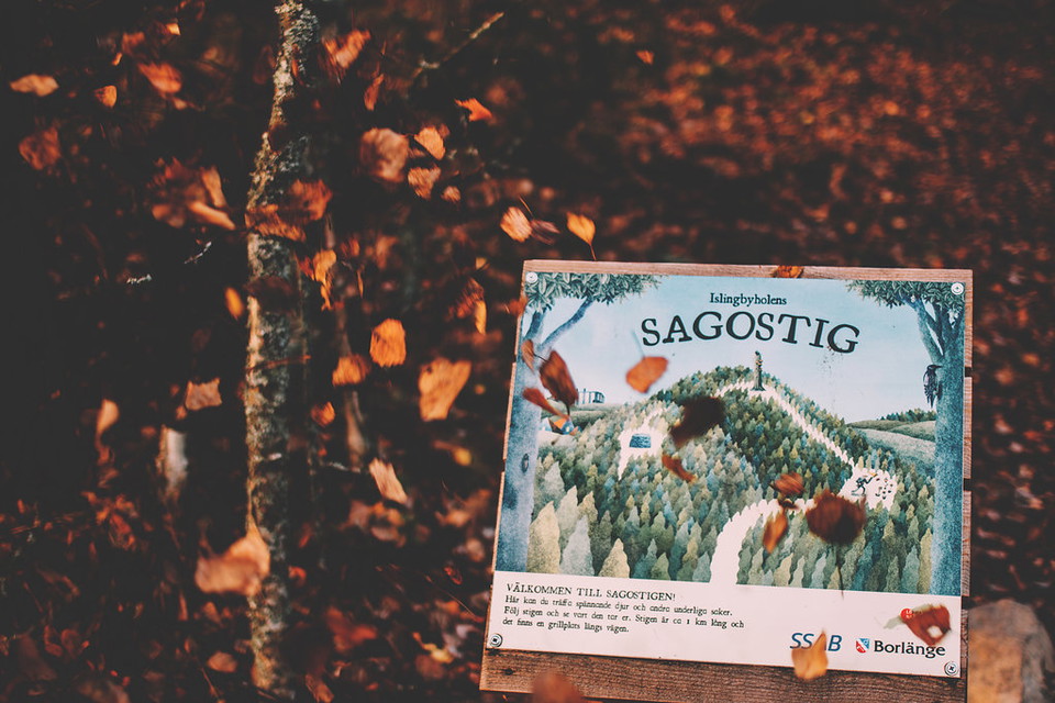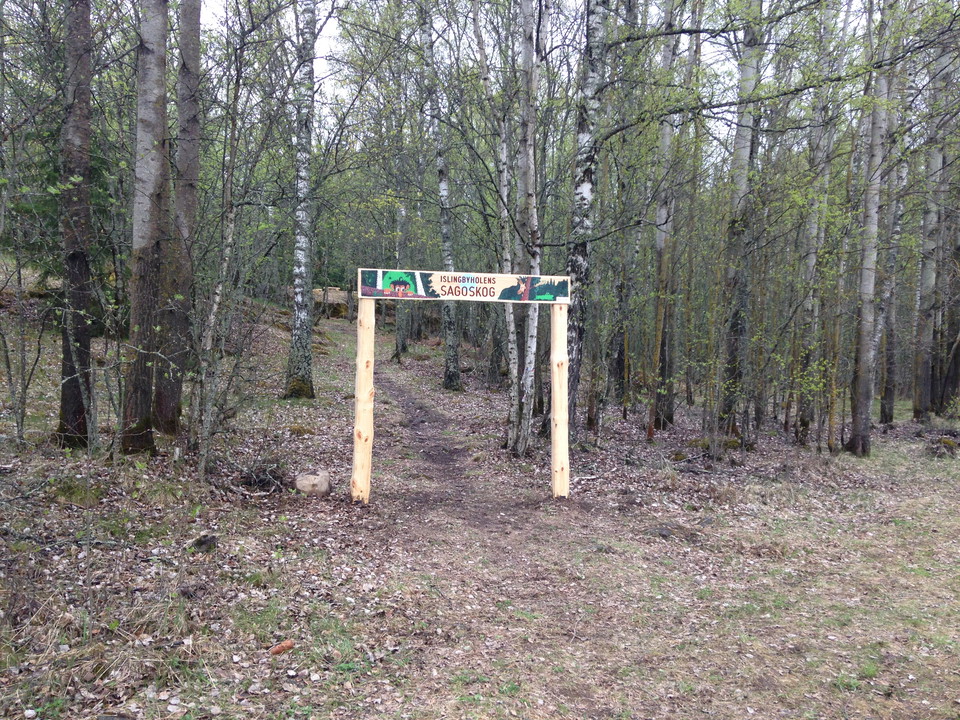 Sagostigen is een wandelvriendelijke bestemming voor gezinnen met kinderen en natuurlijke interesses. Aron Landahl heeft de illustraties gemaakt langs het pad, dat 1 kilometer lang is en in gevarieerde natuur belandt.