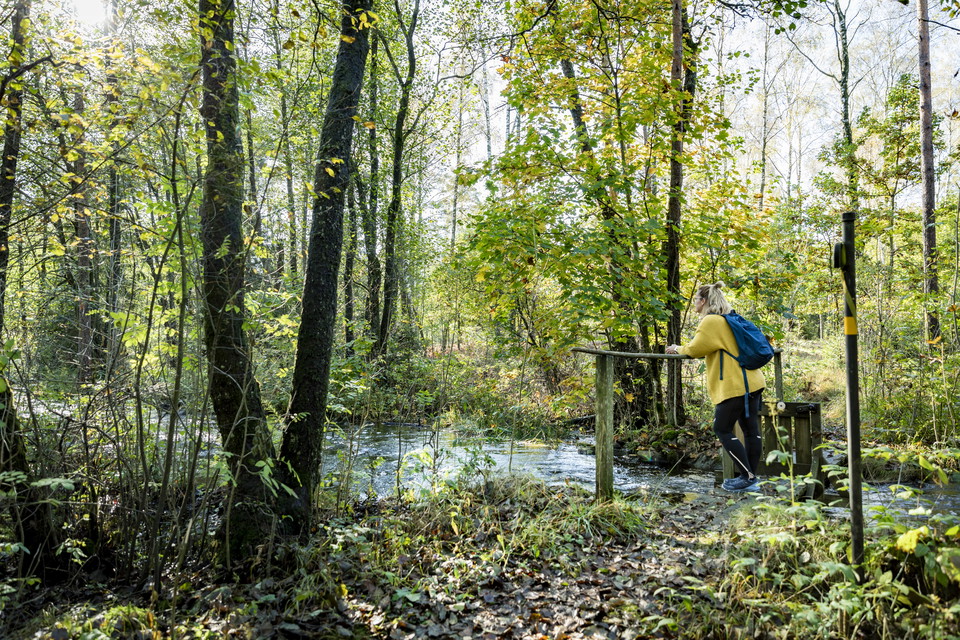 Loop in de voetsporen van de kerkmensen! Van Boa tot Okome loopt een zes kilometer lang pad door prachtige en gevarieerde natuur. Pak de voedselzak en volg de gele markeringen en je krijgt een mooie dag in het bos.