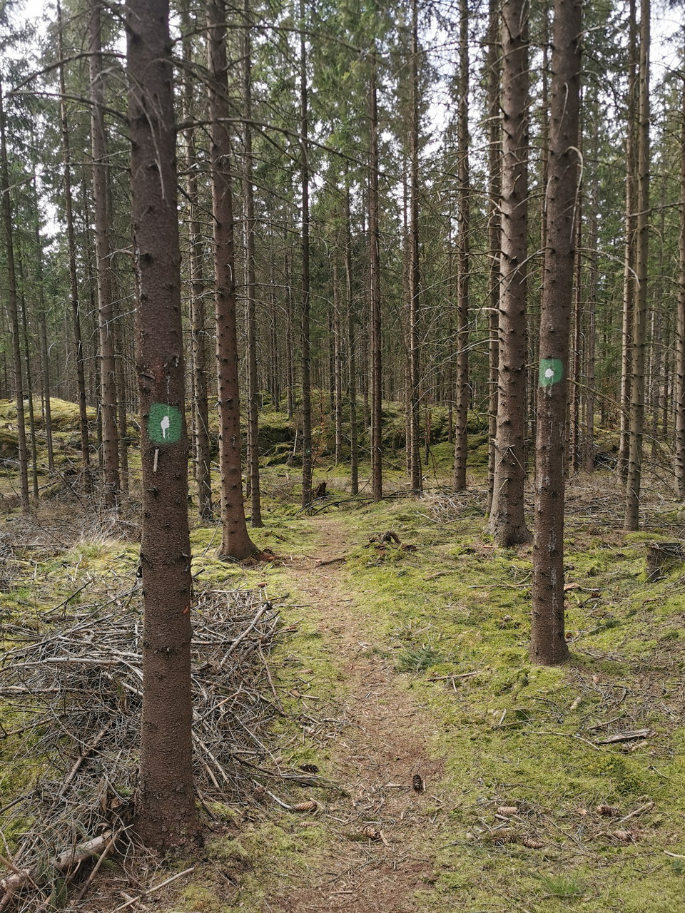 Hjörneredssjöarna was created when Lagan was dammed up to build power plants. We run along the almost surprisingly steep edge down to the river. Parts of the area are protected and the forest has been left to look after itself for a long time. Beech and oak dominate in a hilly landscape with steep slopes. The highest point is Spishall, which is said to have been named after a Danish king who spent the night here. There are nice views in any case. Along the small soft path we also meet a lot of spruce forest, but also larch - and traces of the Ice Age in the form of, among other things, the Midsummer Cave. You get to the cave by taking a detour (see the gpx file) which is definitely worth it!