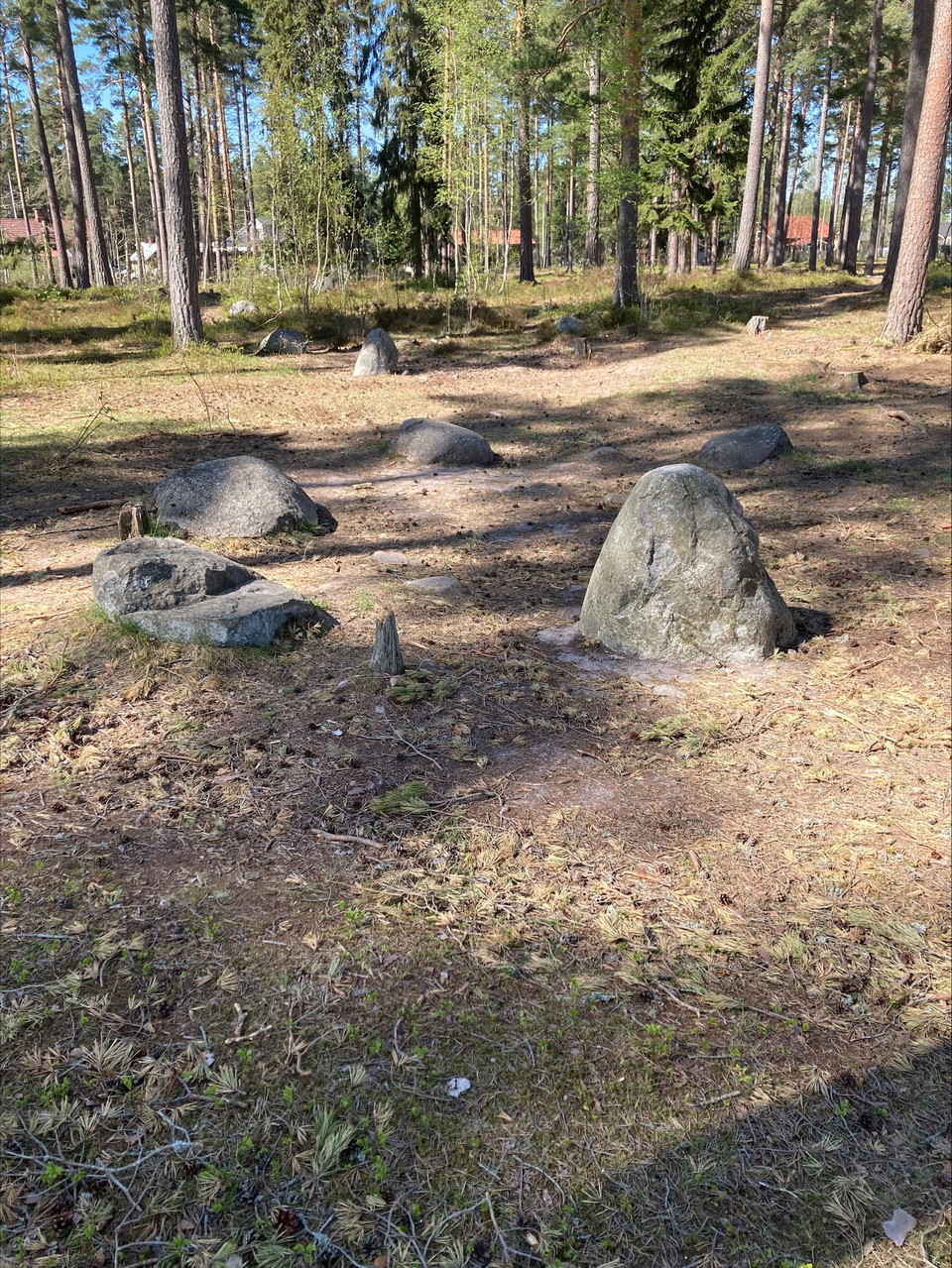 De grotere, zichtbare stenen in de ringen of vierkante stenen circuits zijn soms verbonden met kleinere stenen, maar deze zijn vandaag nauwelijks te zien, omdat ze onder het gras. De dode man werd meestal verbrand op het graf en de grafgeschenken waren weinig. Het monument zelf toonde de status van de doden in het leven.