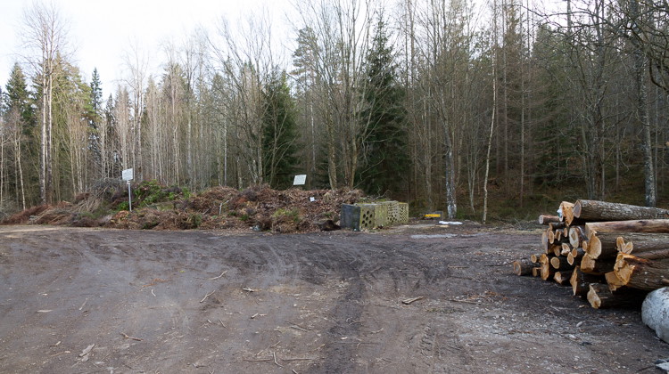 Här ligger en mottagning för allmänhetens ris och kompostmaterial. Kanske inte den vackraste entrén till området, men så fort du kommer in i skogen så har du en betydligt vackrare miljö att njuta av!