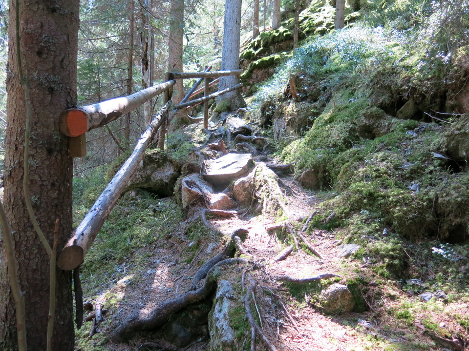 Riktigt fin kuperad skog med bergstoppar och raviner. Tänk bara på att stigen är kuperad och rätt svår passerad på vissa ställen. Även nere i ravinen kan det vara halt och blött