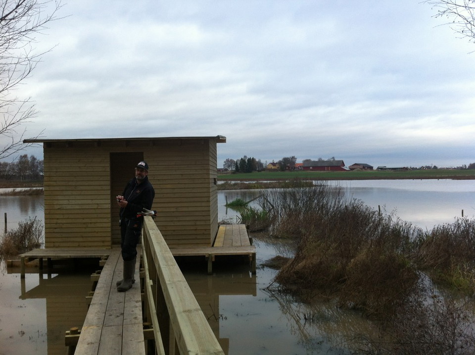 Jättefint gjort med spång ut och liten stuga som gömsle. Någon har bemödat sig att ta ut två stolar med. En av mina favoritplatser när det kommer till fågelskådarområden i Norrköping. Ser stora snäckor i vattnet och mycket fåglar så som grågås och tofsvipa där ute men inte sett snok, salamander eller groddjur där. Rekommenderas!
