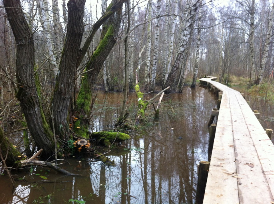 From here you can get far out into the wetland unnoticed. You'll have a better chance of seeing birds up close. The path here goes through a flooded forest, an exciting hike!