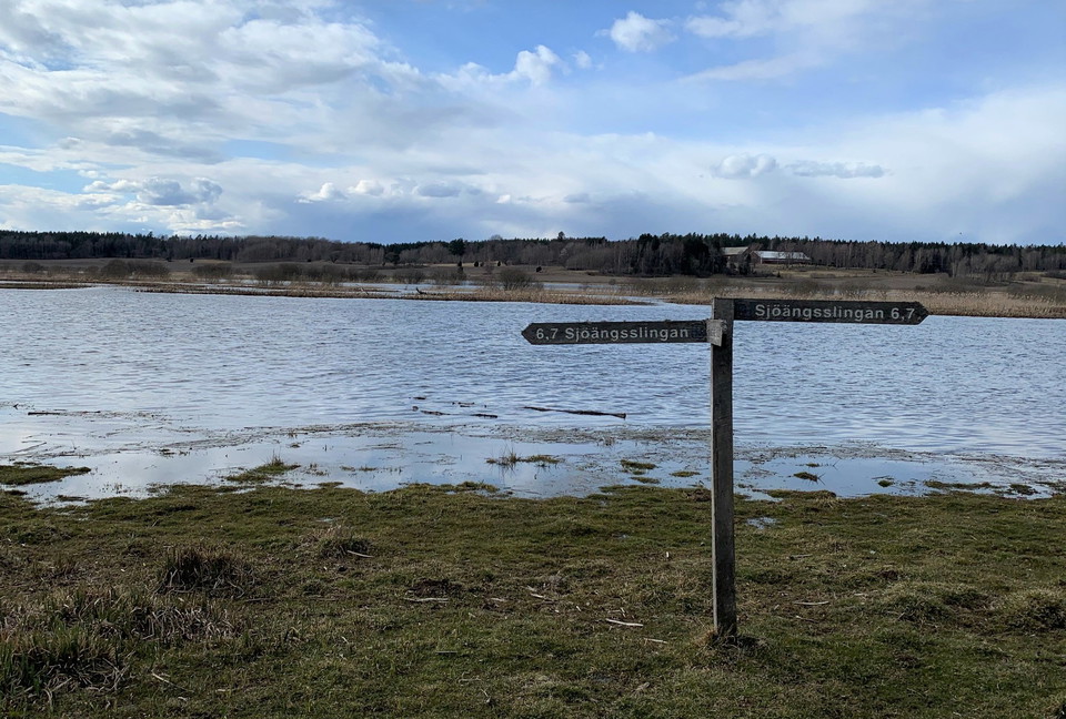 The trail is about 7 km long and takes you through the diverse landscape around the lake. Parts of the trail are raised up on a wooden walkway and runs through grazed meadows and pastures. Along the trail you'll find several picnic areas and fire pits. The trail is not wheelchair-accessible.